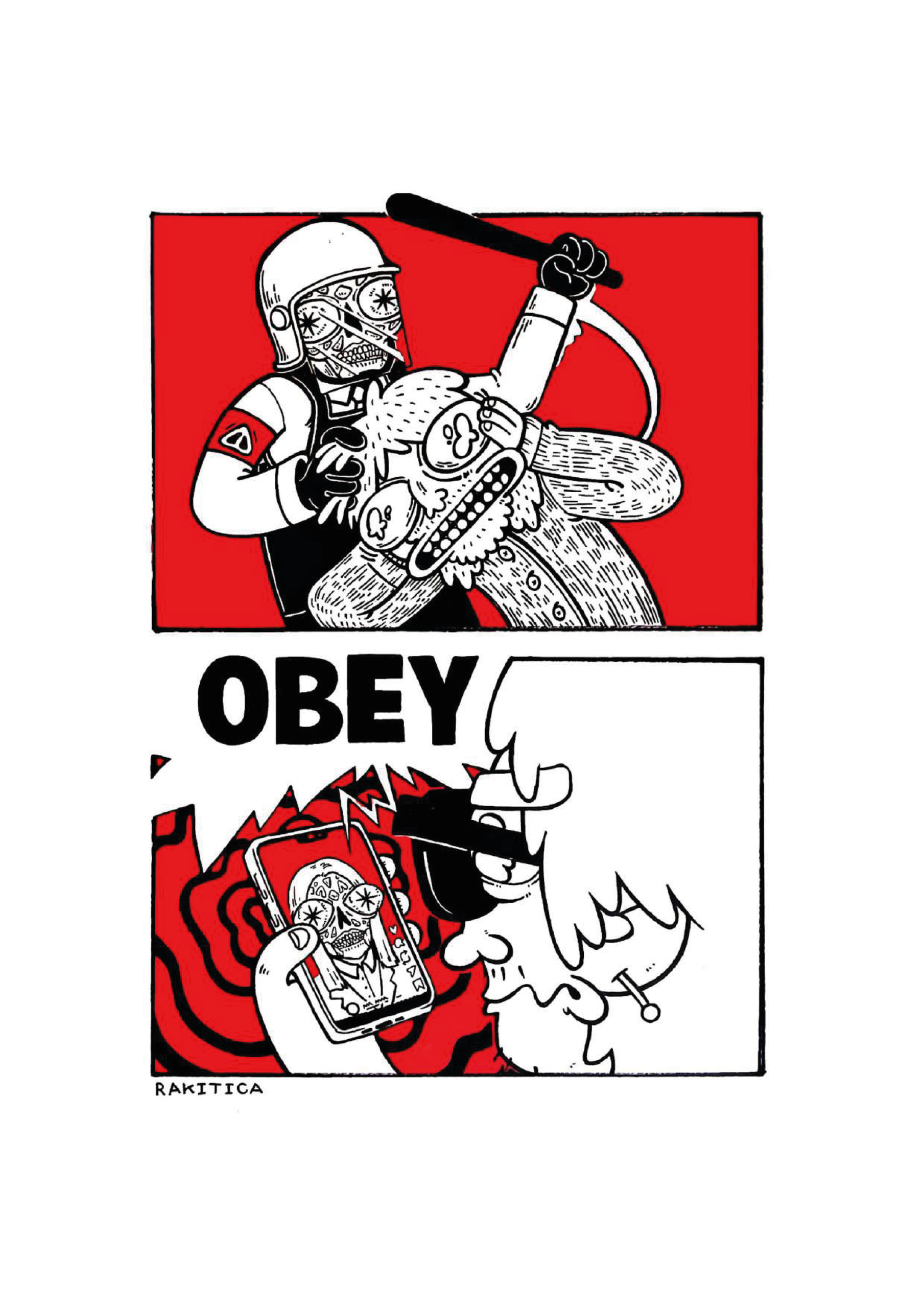 Federico Di Bartolo, in arte Rakitica, si distingue per una ricerca visiva che coniuga immaginario pop e sensibilità underground. Attraverso le sue illustrazioni grafiche, l’artista conduce l’osservatore in un universo iconografico stratificato, affascinato dai codici della popculture e dalle suggestioni provenienti dalle subculture alternative.